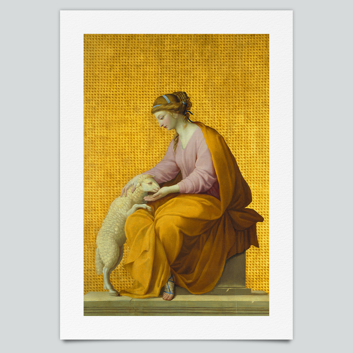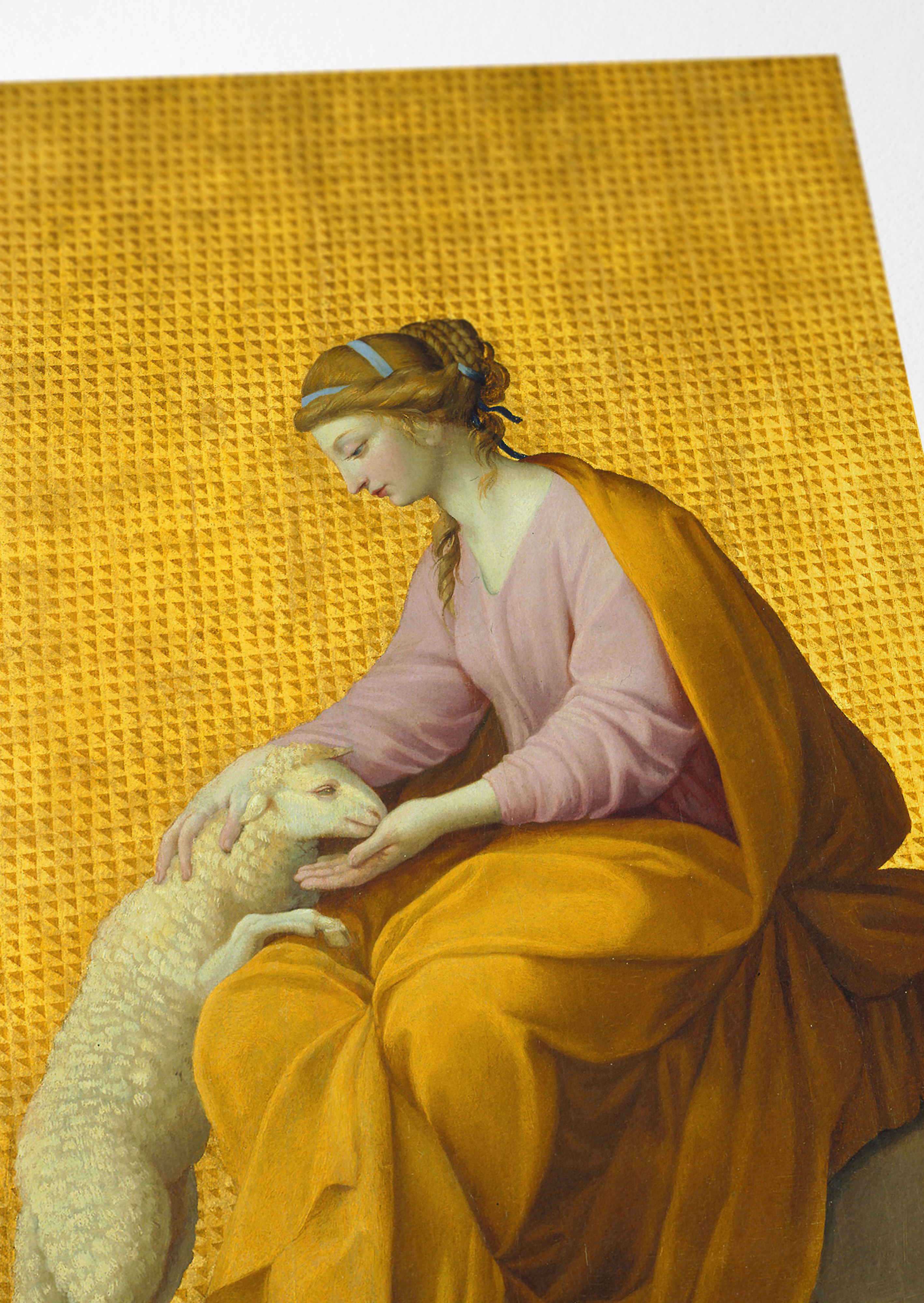 Frau in Gold mit Schaf - Ölgemälde Kunstdruck