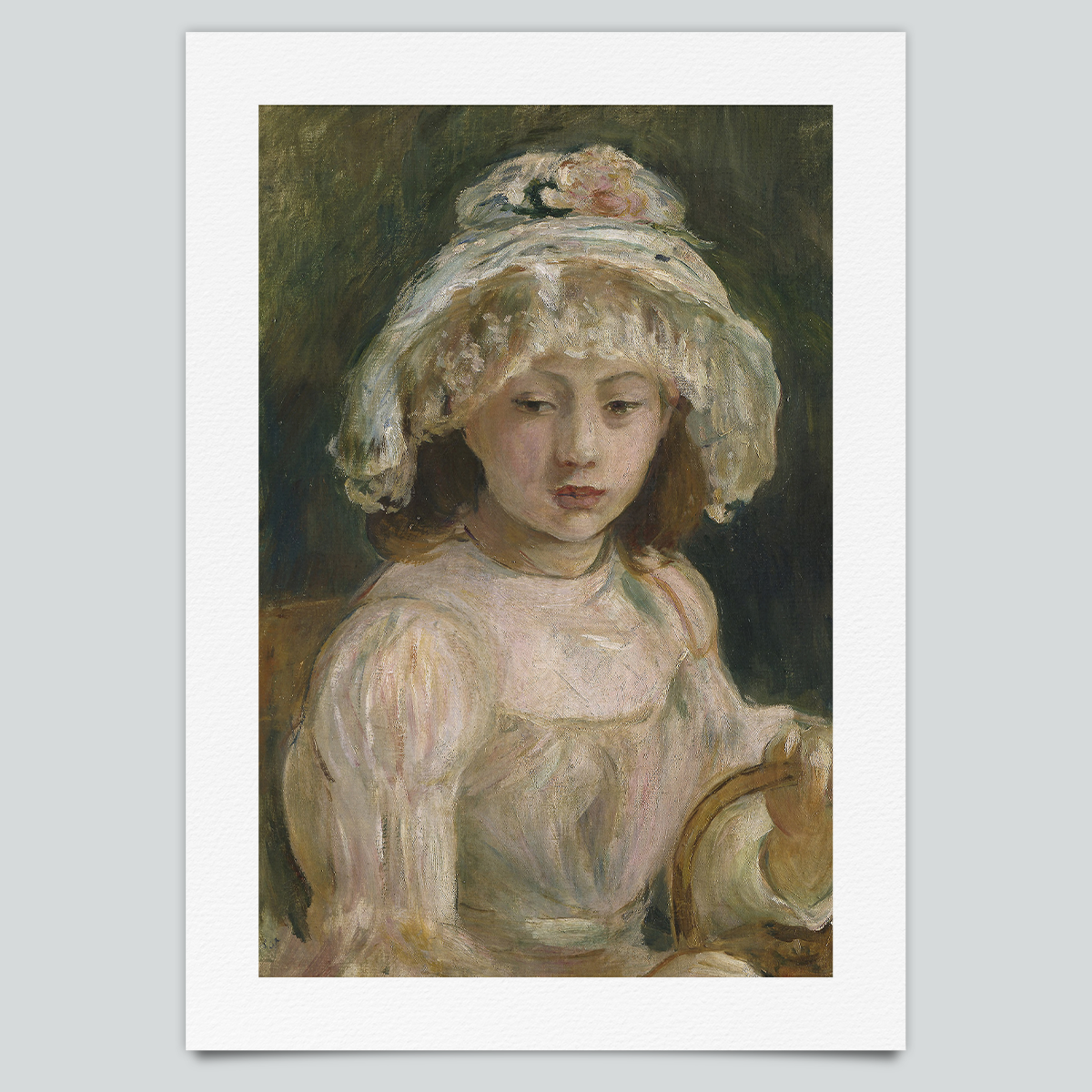 Junges Mädchen in Weiss mit Hut - Ölgemälde Kunstdruck