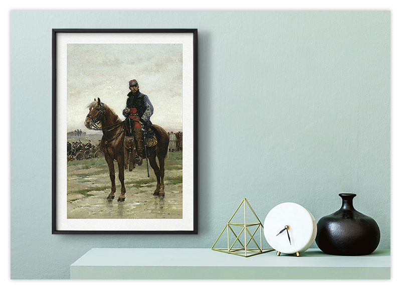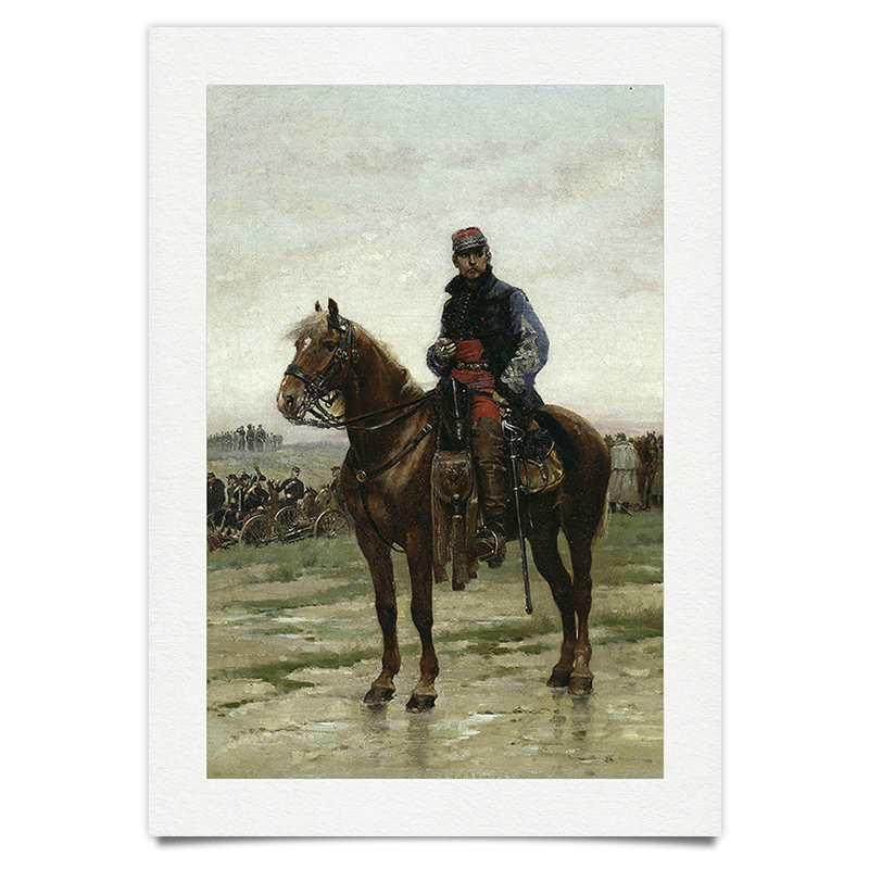 Kavallerie Offizier auf Pferd - Ölgemälde Kunstdruck